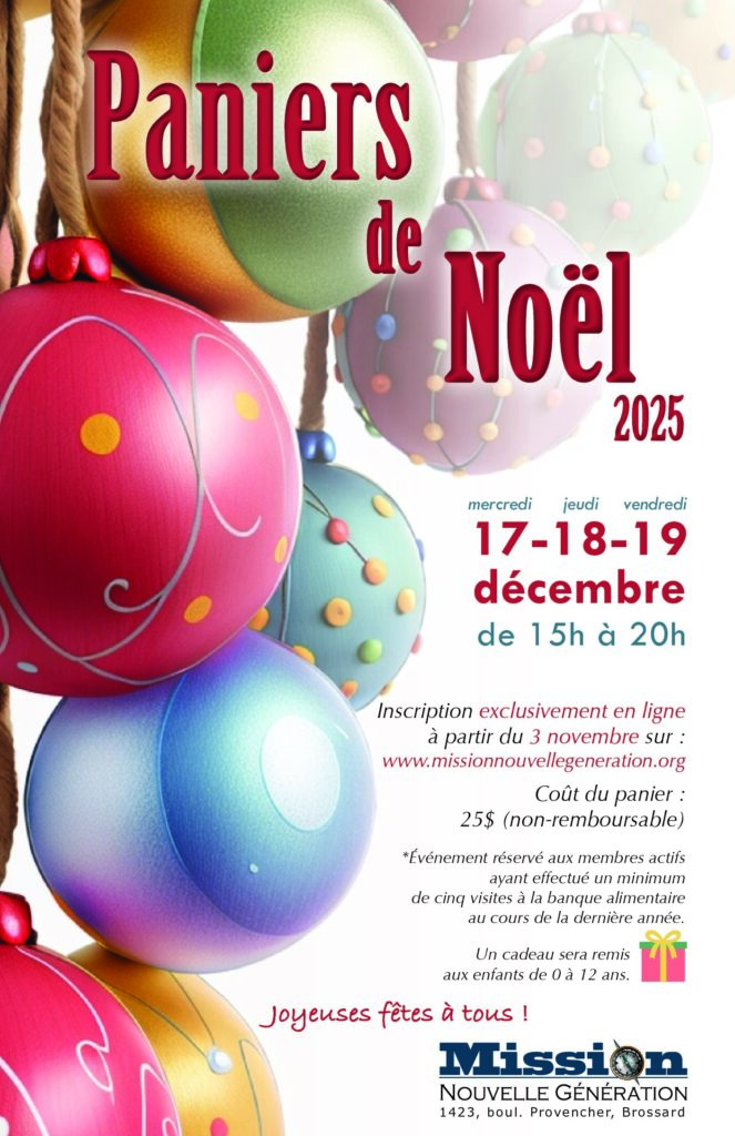 Nous sommes très heureux d’inviter tous les membres de la Banque alimentaire disposant d’une carte active à venir chercher leur billet pour un panier de Noël !